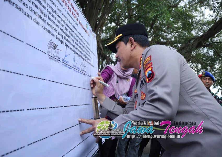 Pemerintah Kota Surakarta bersama Forum Komunikasi Pimpinan Daerah (Forkopimda) menggelar Deklarasi Damai di Alun-alun Utara, Jumat (12/9/2025). Kegiatan tersebut melibatkan lintas tokoh, lintas agama, akademisi, ketua partai, serta tokoh masyarakat, dengan tujuan menjaga keamanan dan kenyamanan Kota Solo.
