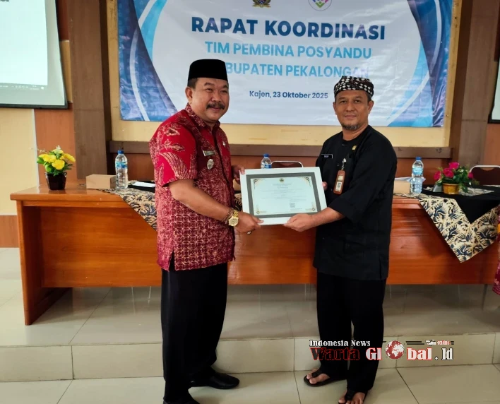 Penghargaan tersebut diterima oleh Kepala Desa Kampil, Slamet Sutrisno, S.E., di ruang rapat Indraprasta lantai 2 Baperida Kabupaten Pekalongan, pada Kamis, 23 Oktober 2025, dalam acara rapat koordinasi Tim Pembina Posyandu Kabupaten Pekalongan.