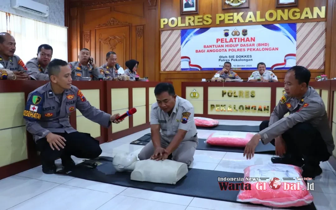 Dokkes Polres Pekalongan menggelar Pelatihan Peningkatan Kemampuan Bantuan Hidup Dasar (BHD) bagi anggota, Kamis (16/10/2025). Kegiatan berlangsung di aula Polres Pekalongan dan juga disiarkan secara daring melalui Zoom Meeting.