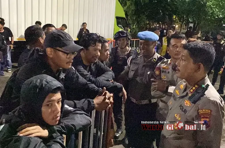 Jajaran Polresta Surakarta melaksanakan pengamanan ketat dalam laga lanjutan BRI Super League 2025/2026 antara Persis Solo melawan Malut United yang digelar di Stadion Manahan, Solo, Senin malam (20/10/2025).