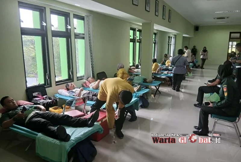 Anggota TNI Kodim 0735/Surakarta mengikuti Aksi Donor Darah dalam rangka memperingati Hari Sumpah Pemuda, Rabu (29/10/25).SURAKARTA, WARTAGLOBAL.id --