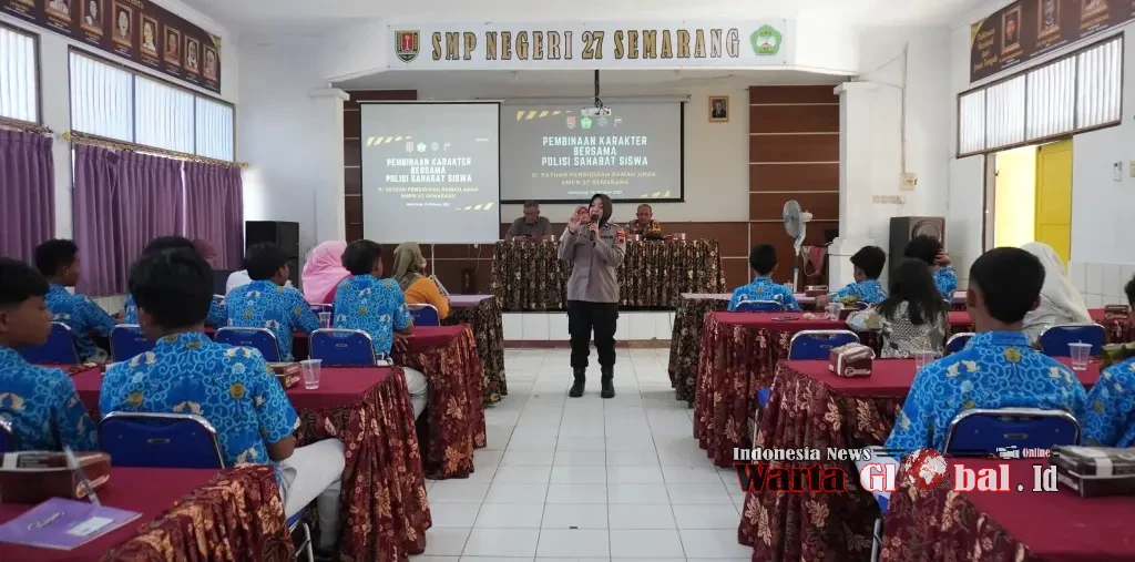 Polsek Banyumanik melalui Bhabinkamtibmas Kelurahan Sumurboto, Aiptu Bobi Andrea Susanto, S.H., bersama Aipda Sri Rahayu, S.H. dari Unit Binmas Polsek Banyumanik melaksanakan kegiatan Pembinaan Karakter Bersama Polisi Sahabat Siswa di Satuan Pendidikan Ramah Anak, bertempat di SMP Negeri 27 Semarang, Jalan Ngesrep Timur VI, Kelurahan Sumurboto, Kecamatan Banyumanik, Kota Semarang, Rabu (15/10/25).