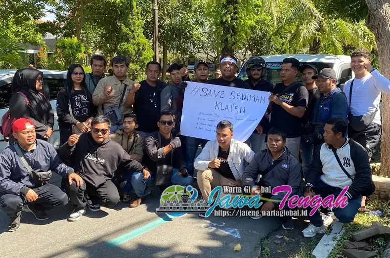 Puluhan seniman dari berbagai paguyuban di Boyolali bergerak menuju Polres Klaten pada Rabu (1/10/2025). Mereka bergabung dengan seniman Soloraya dalam aksi solidaritas untuk RW (23), seorang pemain ketipung yang menjadi korban pengeroyokan di Desa Gemblegan, Kecamatan Kalikotes, Klaten, pada Minggu (28/9/2025).