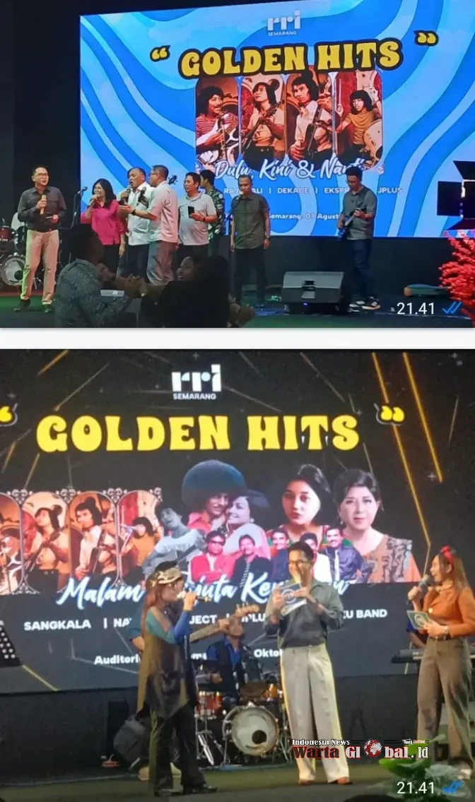 Ratusan penikmat musik lawas memadati Auditorium RRI Semarang dalam gelaran Golden Hits “Dulu, Kini dan Nanti”. Acara yang menghadirkan kembali lagu-lagu legendaris Koesplus ini menjadi obat kerinduan para penggemarnya, Kamis (7/8/2025) malam.