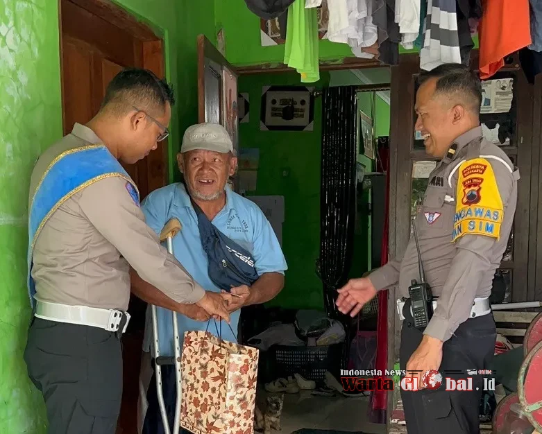 Kasubnit 1 Regident Satlantas Polresta Surakarta, Ipda Tri Hindro Winarso, S.H., (Kanan) bersama sejumlah personelnya, melaksanakan kegiatan sambang ke rumah warga penyandang disabilitas, pada Jumat (31/10/2025).SURAKARTA, WARTAGLOBAL.id --