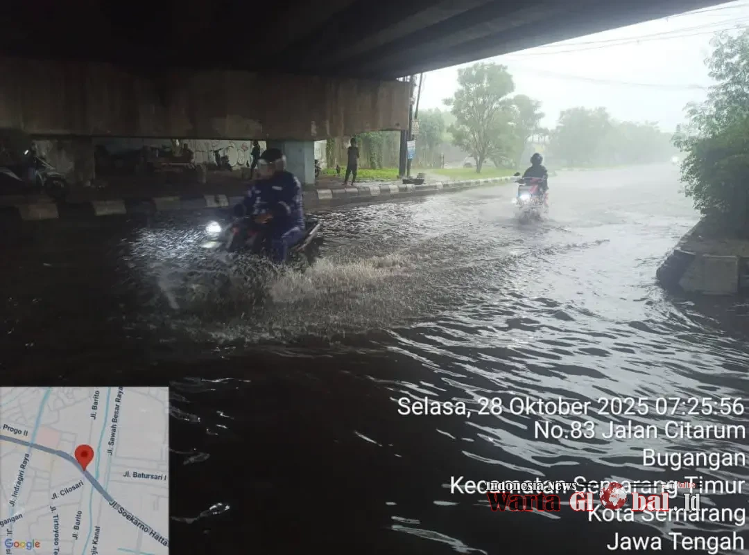 Wilayah Semarang Timur di beberapa titik masih tergenang air dengan kedalaman berpariasi antara 20 - 50 Cm, Selasa (28/10/25).SEMARANG, WARTAGLOBAL.id --