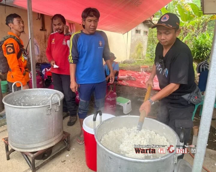 Para Relawan sedang memasak di dapur umum untuk warga yang terdampak bencana Tanah Longsor di Banjarnegara, Senin (17/11/25)