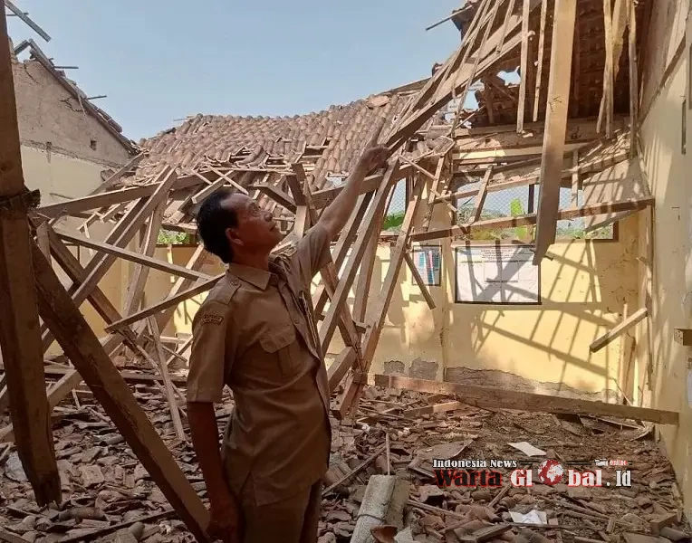 Seorang guru di Kabupaten Sragen menunjukkan bangunan sekolah yang rubuh akibat lapuk termakan usia, Senin (3/11/25)SRAGEN, WARTAGLOBAL.id --