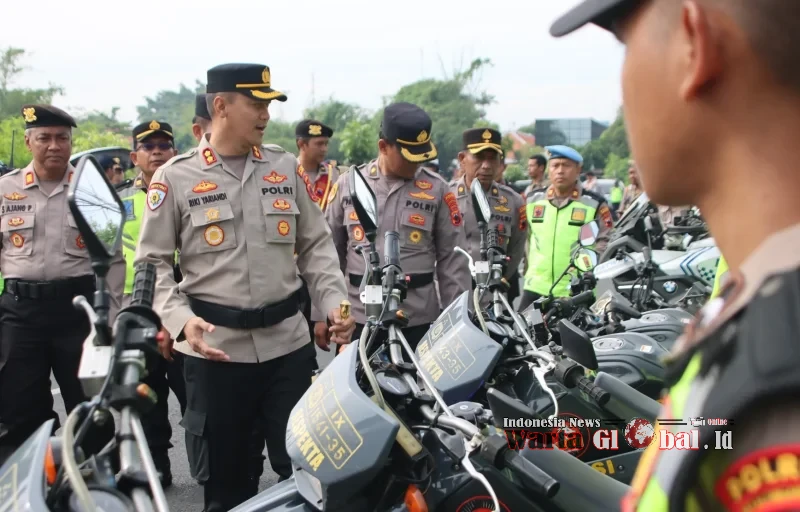 Usai pelaksanaan Apel gelar pasukan, Kapolres bersama jajaran melakukan pengecekan kesiapan sarana dan prasarana kendaraan bermotor yang digunakan selama operasi.