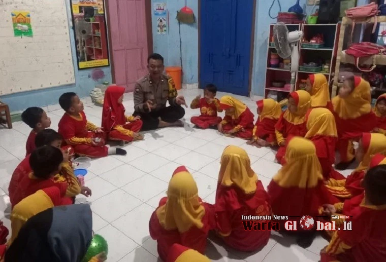 Bhabinkamtibmas Kelurahan Jayengan dari Polsek Serengan, Polresta Surakarta, Aiptu Abdulah Thoyibi saat bersosialisasi kepada anak-anak di TK Darussalam, Jumat (31/10/25).SURAKARTA, WARTAGLOBAL.id --