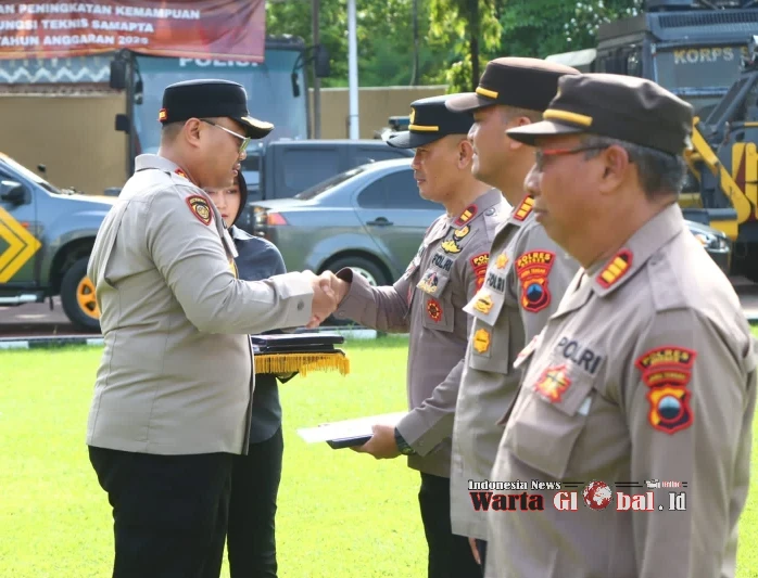 Kapolres Brebes, AKBP Lilik Ardhiyansyah menyerahkan penghargaan kepada Kapolsek Sirampog, Iptu Iman Santoso, Juara I Lomba Video Pendek Quick Respond dalam Rangka HUT Humas Polri ke-74, Selasa (4/11/25).BREBES, WARTAGLOBAL.id --