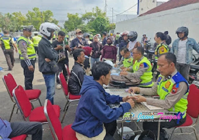 Puluhan pelanggar terjaring dalam razia besar yang digelar Satlantas Polres Sragen di depan Gedung Kartini, Rabu (19/11/2025). Memasuki hari ketiga Operasi Zebra Candi 2025, kegiatan di lapangan semakin diintensifkan, baik penegakan hukum maupun edukasi bagi para pengguna jalan.