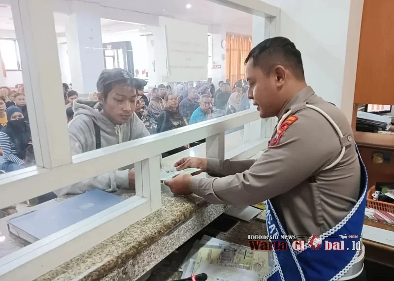 Petugas Satlantas Polres Karanganyar memberikan pelayanan terbaik bagi warga yang membayar dan memperpanjang pajak kenderaan lewat program “Polantas Menyapa”, Kamis (13/11/25)KARANGANYAR, WARTAGLOBAL.id --