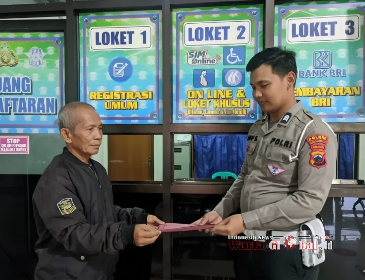 Petugas Satlantas Polres Pekalongan melayani seorang Lansia sedang mengurus SIM dalam penyediaan Loket Khusus Lansia dan Ibu Hamil, Selasa (4/11/25).PEKALONGAN, WARTAGLOBAL.id --
