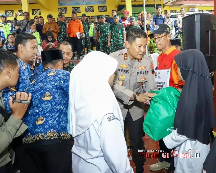 Kapolda Jateng, Irjen Pol Ribut Hari Wibowo memberikan bantuan Sembako kepada warga saat meninjau lokasi pengungsian longsor Banjarnegara, Minggu (16/11/25).Bencana longsor pada Minggu (16/11/2025) pukul 14.30 WIB berdampak cukup luas. Sebanyak 981 jiwa terdampak, 876 warga mengungsi (719 di posko kecamatan, 157 di rumah warga). Sekitar 30 rumah rusak atau terancam longsor. Sebanyak 27 warga masih hilang dan dalam pencarian, sementara dua korban meninggal dunia telah ditemukan.