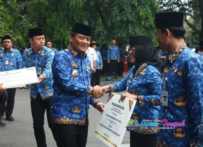 Gubernur Jawa Tengah, Ahmad Luthfi memberikan penghargaan pada seorang ASN yang berprestasi, Senin (1/12/25)“Dalam rangka hari ulang tahun Korpri yang ke-54, kita harus bersatu dan berdaulat. Korpri adalah bagian dari ASN yang tidak dapat dipisahkan dari birokrasi,” ujarnya.