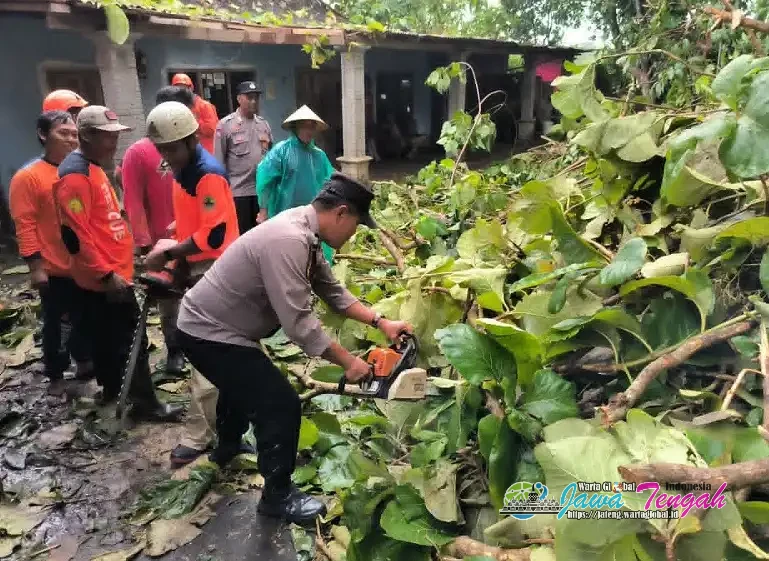 Polisi dan Warga Bergerak Cepat Lakukan Evakuasi pohon Tumbang di Kebakkramat Karanganyar, Senin (22/12/25)KARANGANYAR, WARTAGLOBAL.id --