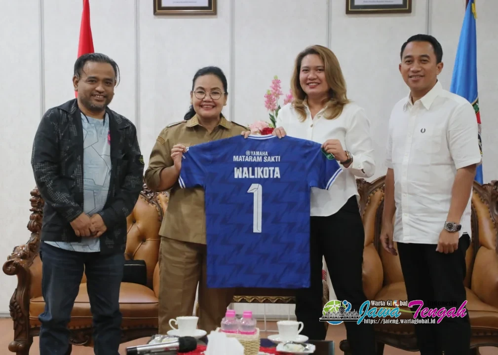 Wali Kota Semarang, Agustina Wilujeng bersama CEO PSIS yang baru, Datu Nova Fatmawati pegang Jersey No punggung 1 Walikota.SEMARANG, WARTAGLOBAL.id --
