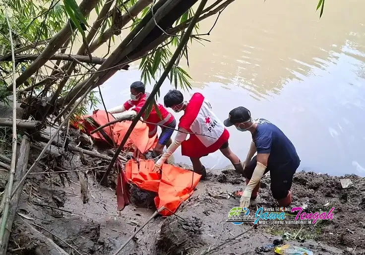 Petugas dan warga melakukan evakuasi terhadap korban Lansia yang ditemukan Meninggal di Tepi Sungai Cemara, Senin (8/12/25)SRAGEN, WARTAGLOBAL.id --