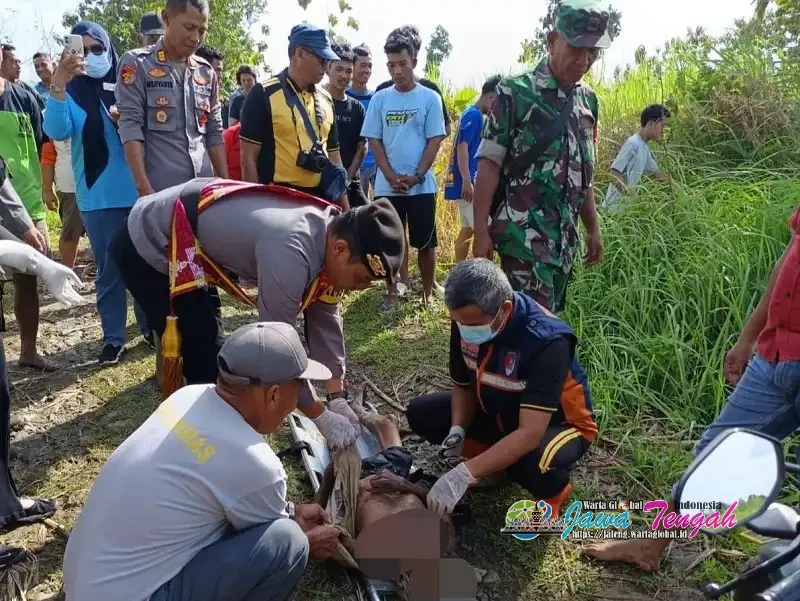Petugas dan warga evakuasi jenazah Petani yang ditemukan Meninggal di Persawahan Gebang, Jumat (12/12/25)SRAGEN, WARTAGLOBAL.id --