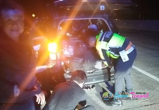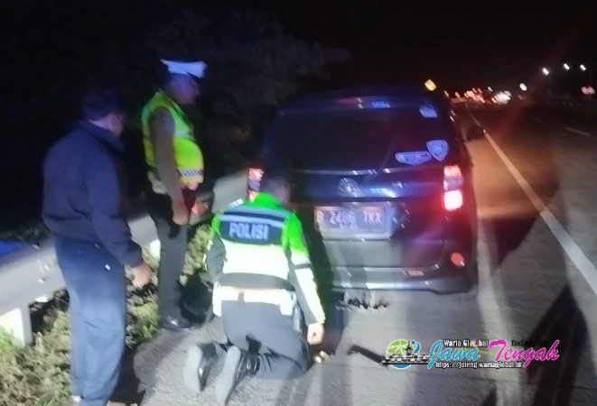 Aksi humanis ditunjukkan personel Satlantas Polres Pekalongan saat melakukan patroli di ruas Tol Pemalang-Batang, Sabtu (27/12/2025) malam. Petugas dengan sigap membantu seorang pengemudi asal Jakarta yang mengalami insiden pecah ban di tengah perjalanan pulang.