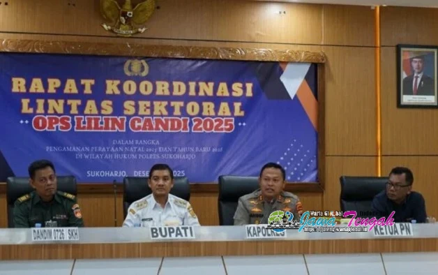 Pemkab Sukoharjo, Perwakilan TNI, instansi vertikal, tokoh lintas agama, hingga relawan berkumpul mengikuti Rapat Koordinasi (Rakor) Lintas Sektoral Operasi Lilin Candi 2025 yang dipimpin Kapolres Sukoharjo AKBP Anggaito Hadi Prabowo. Pertemuan tersebut dilaksanakan di Aula R. Kusnadi Polres Sukoharjo pada Rabu (10/12/25).