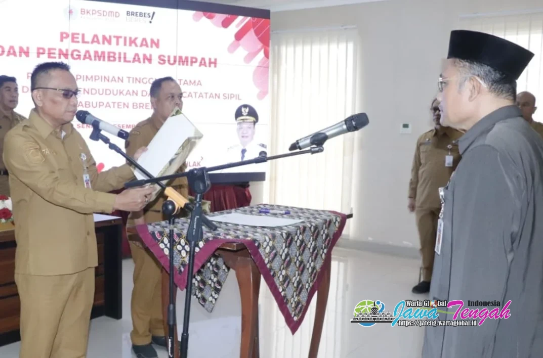Sekretaris Daerah Brebes, Dr. Tahroni, MPd, melantik Drs. Akhmad Ma'mun, MSi, sebagai Kepala Dinas Kependudukan dan Pencatatan Sipil (Dindukcapil) Kabupaten Brebes, Senin (8/12/2025). Pelantikan ini diharapkan dapat meningkatkan kualitas pelayanan administrasi kependudukan (adminduk) di Brebes, terutama dalam program layanan adminduk sehari jadi.