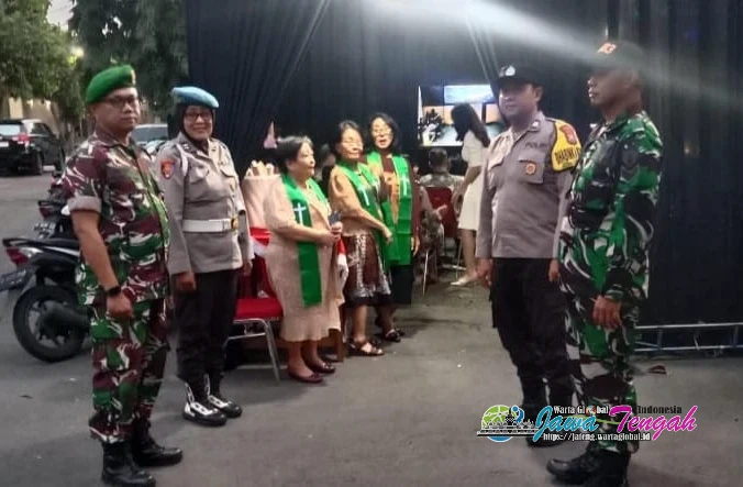 Petugas TNI-Polri berjaga mengamankan Perayaan Malam Natal di Gereja GKIN Narwastu Kota Malang, Rabu (24/12/25) malam.MALANG, WARTAGLOBAL.id --