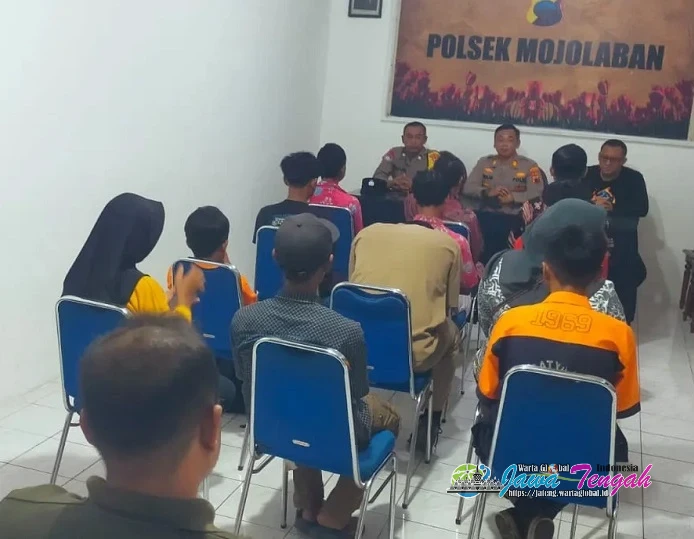 Aparat kepolisian dari Polsek Mojolaban memberikan pembinaan kepada tujuh pelajar tingkat SMP dan SMK yang tertangkap membolos sekolah saat jam pelajaran. Para pelajar tersebut kedapatan nongkrong di sebuah warung di wilayah Desa Triyagan, Kecamatan Mojolaban, Kamis (15/1/2026) siang.