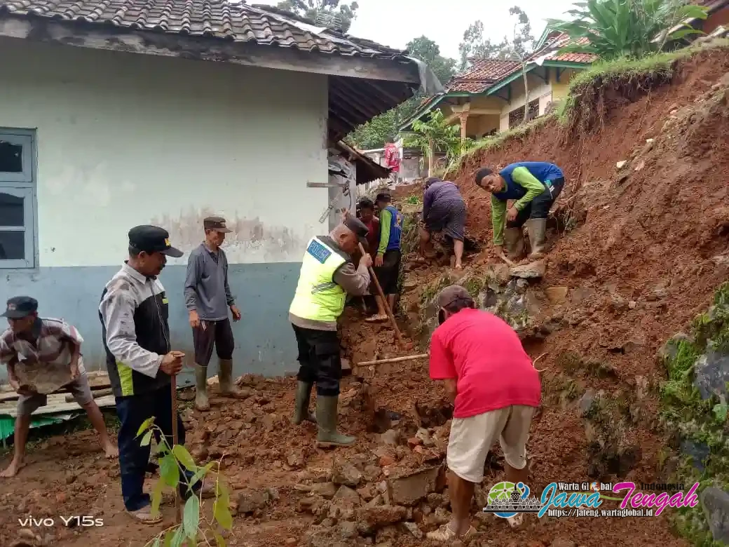 Rumah milik Ibu Romjanah, warga Dukuh Bandung, dilaporkan mengalami kerusakan pada bagian pondasi dan dinding akibat terjangan cuaca buruk. Mendengar kabar tersebut, Aiptu Darudin tidak tinggal diam. Ia membaur bersama tokoh masyarakat dan warga sekitar untuk menyingkirkan material batu agar tidak membahayakan penghuni rumah.