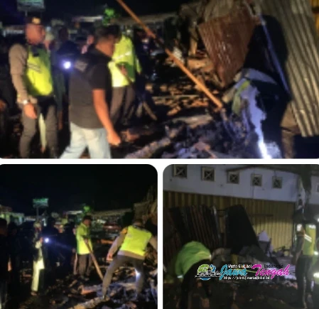Rangkaian kegiatan Petugas Polres Pekalongan saat melakukan pengamanan di TKP Tembok Ruko Roboh yang Timpa Warga Berteduh, Jumat (16/1/26)Total ada enam ruko yang terdampak, yaitu Ruko Bakso dan Mie Ayam Mbak Anief, Salon Astri, Estetik Stiker, serta tiga unit ruko yang dalam kondisi kosong.