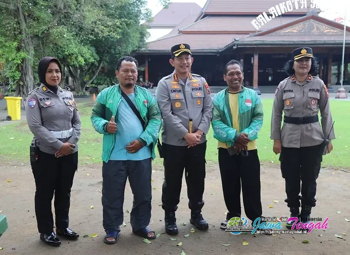 Kapolresta Surakarta, Kombes Pol Catur Cahyono Wibowo, foto bersama dengan Pengemudi Ojol di Depan Balaikota Solo, Jumat (23/1/26).SURAKARTA, WARTAGLOBAL.id --