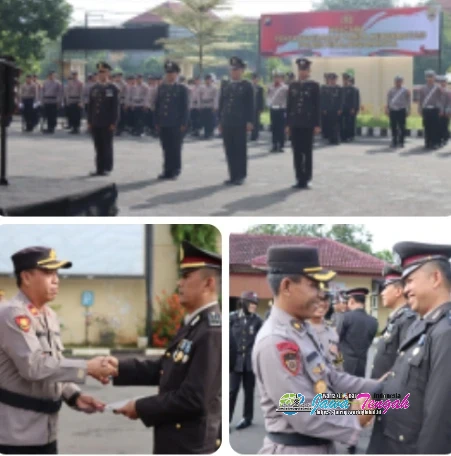 Upacara yang berlangsung penuh khidmat, ditutup dengan pemberian ucapan selamat oleh Pejabat Utama (PJU) Polres Pekalongan Kota serta seluruh peserta upacara kepada para penerima penghargaan. Suasana penuh rasa bangga dan haru mewarnai kegiatan tersebut, sekaligus mencerminkan soliditas serta kesiapan personel dalam menjalankan tugas pengabdian kepada masyarakat, bangsa, dan negara. (Ari)