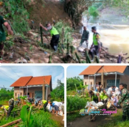 Sinergitas TNI-Polri bersama masyarakat di Kabupaten Pekalongan terus diperkuat demi mengantisipasi dampak bencana alam. Sejak pagi tadi, puluhan personel gabungan terjun langsung melakukan kerja bakti pembuatan tanggul darurat di titik longsor aliran Sungai Kupang, Desa Pangkah, Kecamatan Karangdadap, Jumat (6/2/2026).