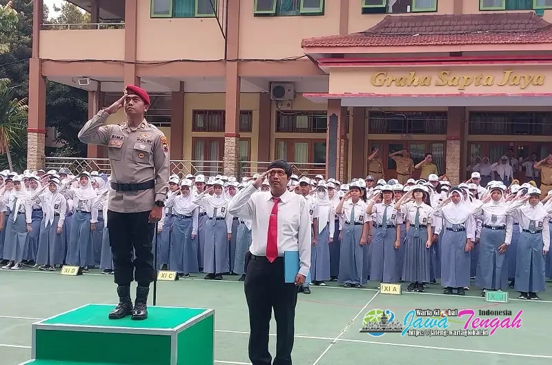 Seorang Kanit Polresta Surakarta Jadi Pembina Upacara di salah satu Sekolah SMA di Solo, Senin (23/2/26).SURAKARTA, WARTAGLOBAL.id --