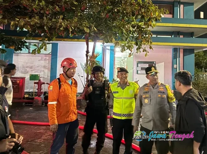 Kebakaran yang terjadi di Kantor PLN Gardu Induk Jajar, Kecamatan Laweyan, Kota Surakarta, Selasa (17/3/26) dini hari, langsung ditangani cepat oleh personel piket Polresta Surakarta setelah menerima laporan dari masyarakat.