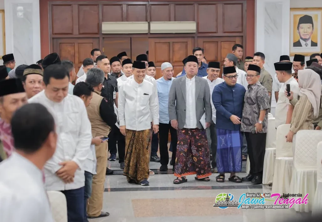 Gubernur Jawa Tengah Ahmad Luthfi dampingi Menteri Agraria dan Tata Ruang/Kepala Badan Pertanahan Nasional (ATR/BPN), Nusron Wahid dan Ketua Komisi II DPR RI, Rifqinizamy, saat acara safari Ramadan dan buka bersama, di Grhadika Bhakti Praja, Semarang, Sabtu (7/3/2026).SEMARANG, WARTAGLOBAL.id --