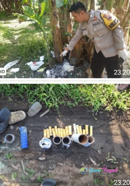 Petugas kepolisian yang datang ke lokasi langsung melakukan olah tempat kejadian perkara (TKP), mengamankan barang bukti, serta meminta keterangan saksi. Dari lokasi, polisi menyita sejumlah barang yang diduga digunakan untuk merakit mercon, seperti selongsong berbagai ukuran, serbuk belerang, serta alat bantu lainnya.