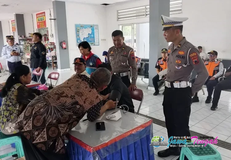 Petugas Satlantas Polres Wonogiri Gelar Ramcheck dan Cek Kesehatan Sopir Bus di Terminal Giri Adipura, Kamis (26/3/26).WONOGIRI, WARTAGLOBAL.id --