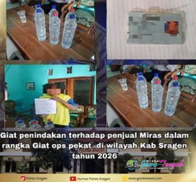 Upaya pemberantasan penyakit masyarakat terus digencarkan jajaran Polres Sragen melalui Operasi Penyakit Masyarakat (Pekat) 2026. Dalam operasi tersebut, Sat Samapta Polres Sragen mengamankan seorang pria lanjut usia yang diduga menjual minuman keras jenis ciu tanpa izin di wilayah Kecamatan Gondang, Kabupaten Sragen.
