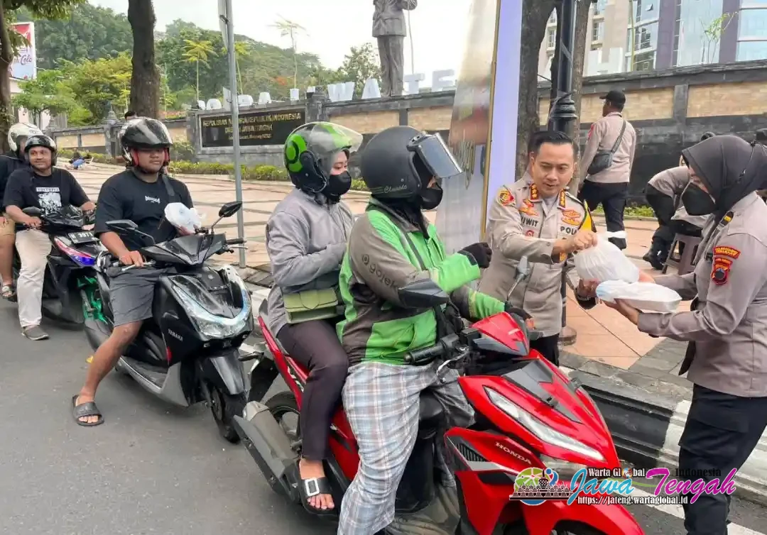 Kepedulian terhadap masyarakat kembali ditunjukkan jajaran Polrestabes Semarang melalui kegiatan berbagi takjil kepada para pengguna jalan. Uniknya, ratusan paket makanan tersebut dimasak langsung di lokasi menggunakan mobil dapur lapangan, menghadirkan nuansa kebersamaan yang hangat di tengah aktivitas kota.