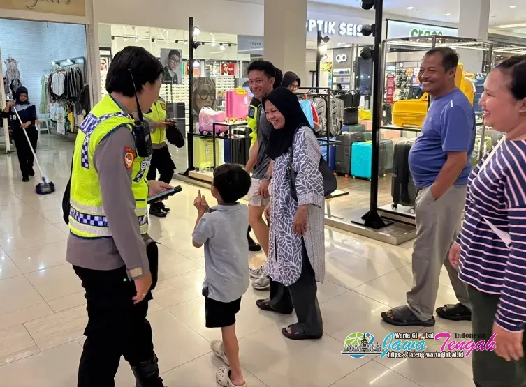 Petugas Polwan Polresta Surakarta, saat menyapa pengunjung dengan ramah di Pusat Perbelanjaan, Rabu (25/3/26).SURAKARTA, WARTAGLOBAL.id --