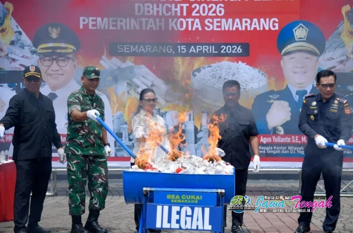 Wali Kota Semarang, Agustina Wilujeng Bersama Kepala Kantor Bea Cukai Semarang, Mochamad Syuhadak memusnahkan Jutaan batang Rokok dan minuman beralkohol Ilegal di halaman Balai Kota Pemkot Semarang, Rabu (15/4/26)(Istimewa)SEMARANG, WARTAGLOBAL.id --