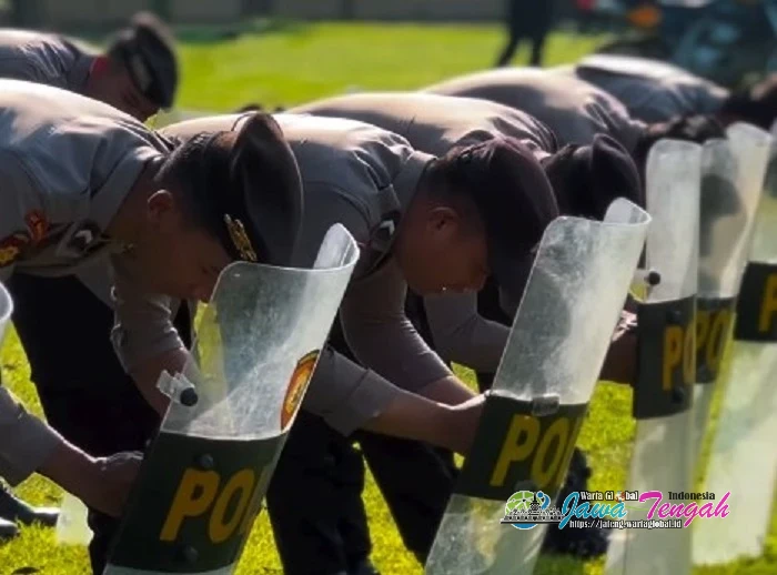 Personel Polres Sragen, saat melakukan pelatihan PAM Kesiapsiagaan dan Penanganan Penyampaian Pendapat di Muka Umum, Selasa (14/4/26).SRAGEN, WARTAGLOBAL.id --