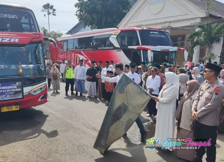Wakil Wali Kota Pekalongan Hj. Balgis Diab, mengangkat Bendera saat memberangkatkan Calon Jamaah Haji Pekalongan Kota menuju Asrama Haji Donohudan, Sabtu (25/4/26).PEKALONGAN KOTA, WARTAGLOBAL.id --