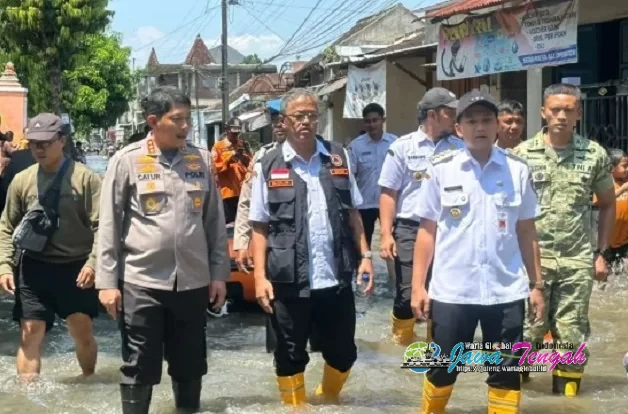 Wali Kota Surakarta, Respati Achmad Ardianto Bersama Kapolresta Surakarta, Kombes Pol Catur Cahyono Wibowo, saat meninjau Banjir Bengawan Solo, Rabu (15/4/26).SURAKARTA, WARTAGLOBAL.id --